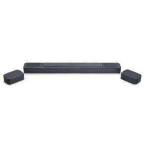 Thrilling, precise bass from mighty 10″ wireless subwoofer brings the excitement to your action movies and the emotion to your music. JBL Bar 800 5.1.2 Channel Soundbar with Detachable Speakers