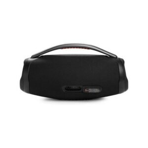 We just made our most powerful portable Bluetooth speaker even better. The iconic silhouette of the JBL Boombox 3 has a bold new update featuring a sturdy metal handle with silicone grips, twin sidecaps, and waterproof and dustproof signature fabric.